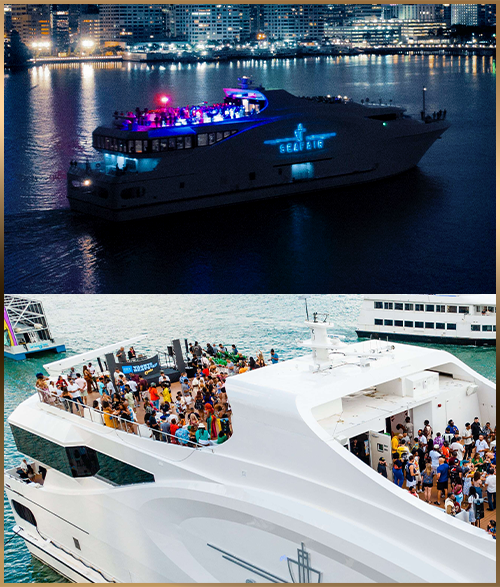 Board the Seafair Mega Yacht from one of Miami’s most iconic waterfront locations. Steps from luxury hotels, nightlife, and the city’s best views — the night begins the moment you arrive.